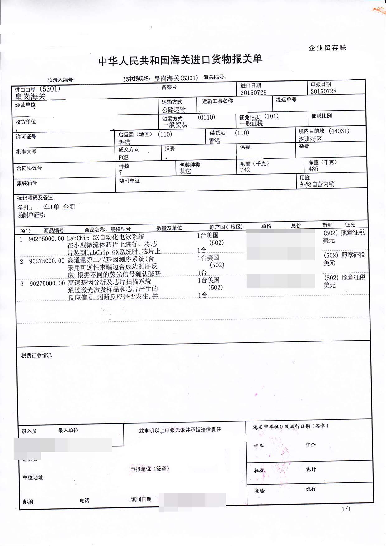 一、基因檢測儀進口報關手續資料