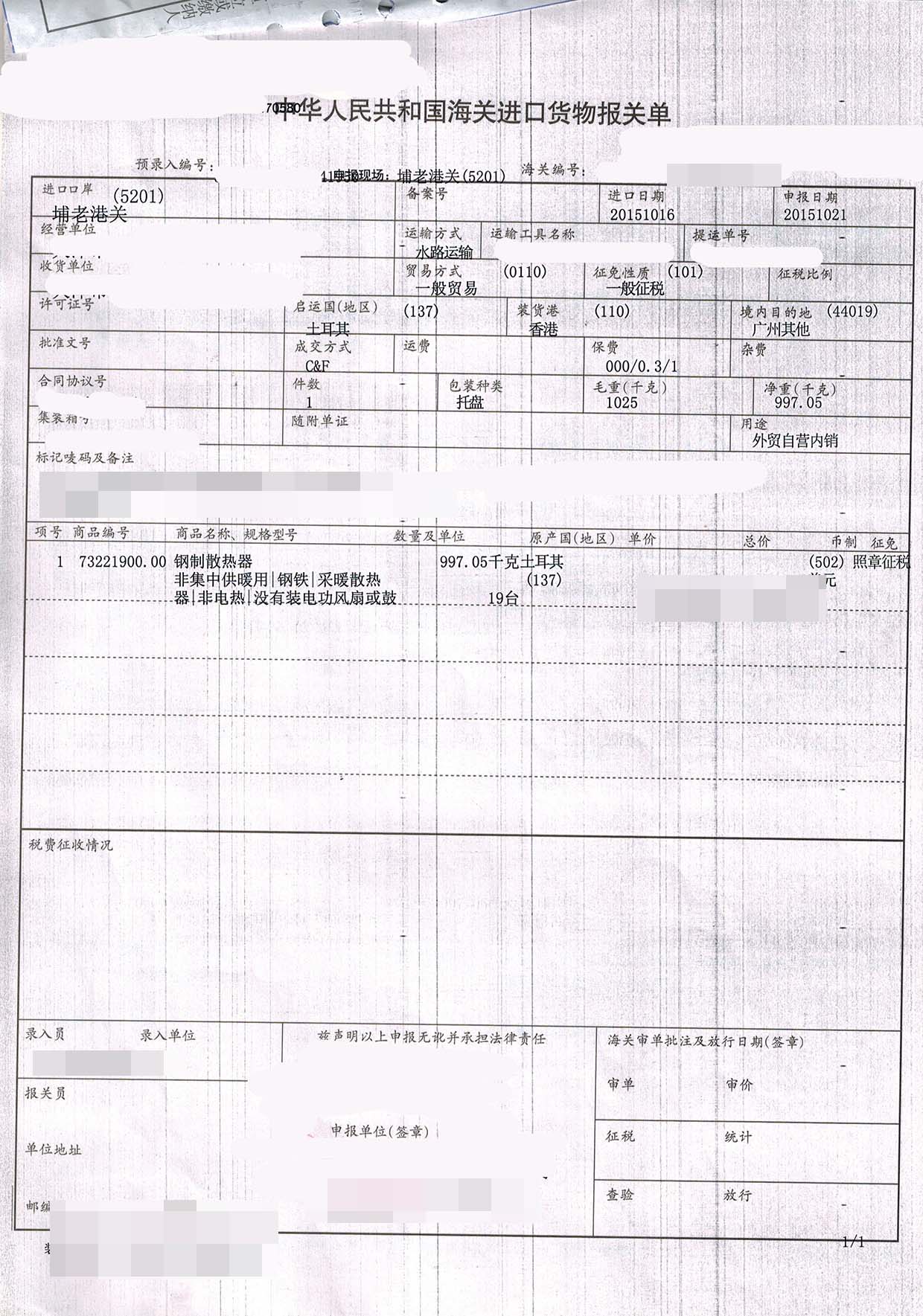【文章標題】:鋼制散熱器進口報關(guān)手續(xù)及案例【建議收藏】 http://m.sw20000.com.cn/lm9/64.html 轉(zhuǎn)載請注明出處