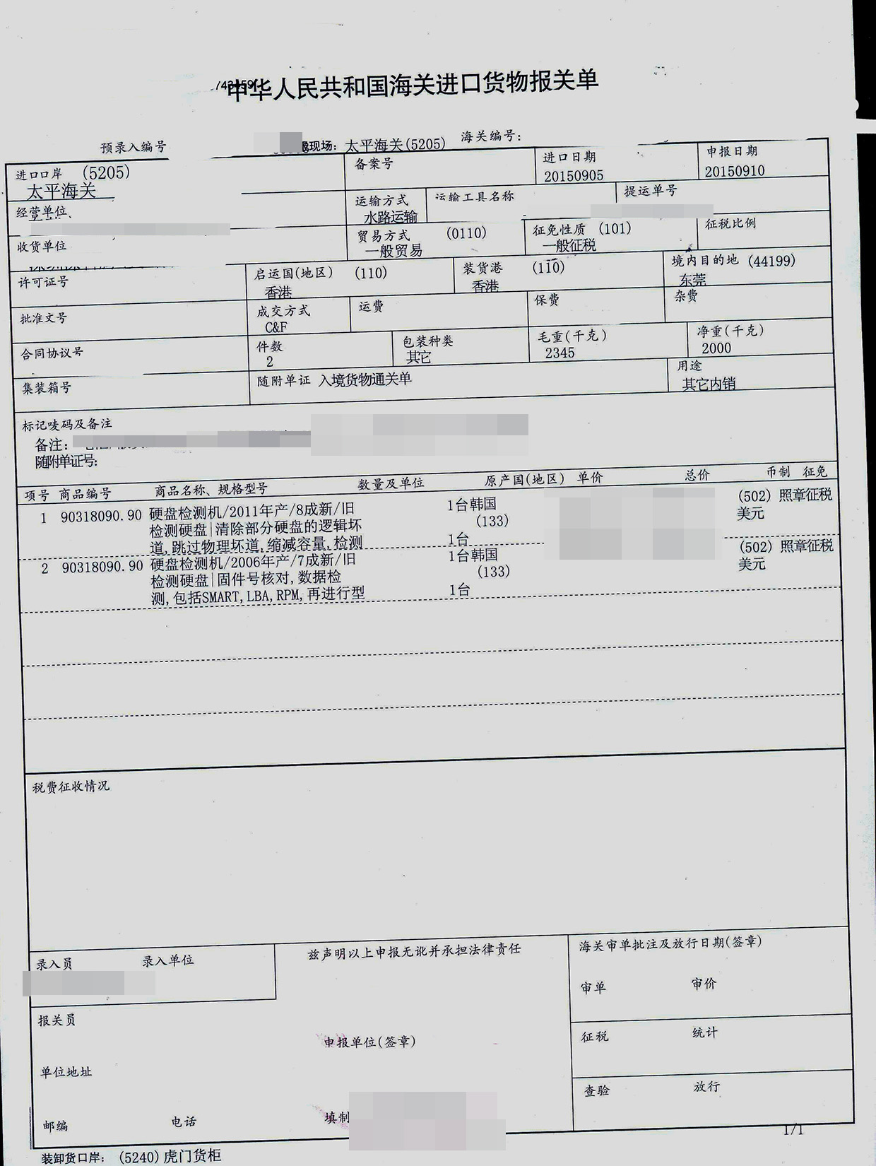 【文章標題】:舊硬盤檢測機進口報關手續及案例【建議收藏】 http://m.sw20000.com.cn/lm9/77.html 轉載請注明出處