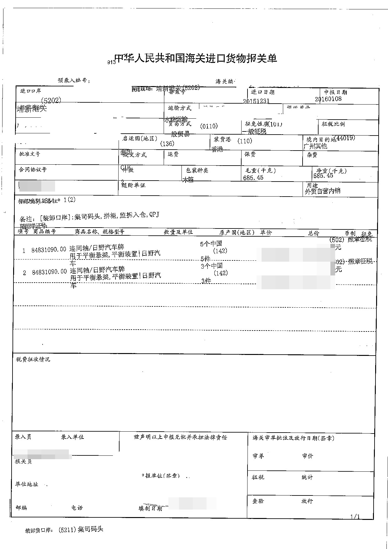 連同軸(汽車用)進口報關手續及案例【建議收藏】